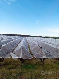 Vigneto sotto rete copertura con struttura in pali di cemento, Uliveto circostante .