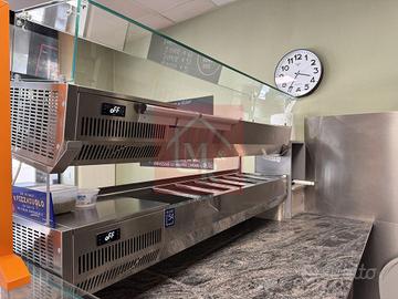 Questa è un'ottima opportunità cui non te la devi far scappare!! Si tratta della "PIZZERIA AL TAGLIO ARCOBALENO" in pieno centro a Cervignano del Friuli! Attività ormai storica, ha appena compiuto 20 anni di attività; non dovrai imbatterti in ristrutturazioni, pensare a strategie commerciali... è pronta all'uso in quanto è stata completamente rinnovata da pochissimo sotto tutti i punti di vista, devi solo entrare, dare sfogo alla tua fantasia e proporre le tue pizze! I locali sono così composti: la ampia sala per accogliere la clientela con alcuni tavoli pronti alla consumazione dei tranci, il bancone espositore con angolo lavorazione delle pizze, sul retro grande retrobottega con i frigoriferi, il ripostiglio/magazzino con scaffalatura in acciaio, gli spogliatoi con cinque scompartimenti ed i bagni con l'armadio per le scarpe, l'acqua calda si riscalda con lo scaldabagno elettrico, tutti gli impianti sono nuovi e messi a norma, ed è stato appena effettuato il controllo della messa a terra; importantissimo, tutti gli ambienti sono provvisti di sistema di aspirazione. All'interno di essa troverai il forno con due camere separate, le due vetrine frigo per gli ingredienti, i banchi in inox, il freezer, l'armadio frigo a due ante, la cella frigorifera 1,6m X 1,8m, il lavello con la lavastoviglie, l'impastatrice, l'affettatrice, il taglia verdure ed altri accessori. Affitto dei muri €800/mese