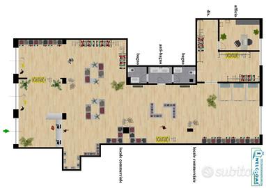 (Riferimento: 1253) Locale commerciale in posizione centrale pressi Via Marconi, con tre vetrine ampie su strada di forte passaggio. Fino a poco tempo fa era utilizzato come palestra, ma non è vincolante l'utilizzo. Il locale si presenta come un open space ampio da poter modulare e dividere a piacere. Ha due bagni completi a norme antibarriere e poi si accede ad un ampio locale spogliatoio con un box doccia. Il locale si presenta in ottime condizioni con il pavimento in gres ed e' dotato di impianto di illuminazione a plafoniere nel controsoffitto e i climatizzatori. Classe En ind