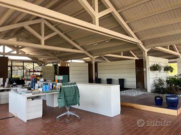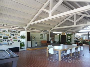 Attualmente la proprietà sviluppa 1350 mq di strutture coperte adibite a serra e magazzino/deposito attrezzature.