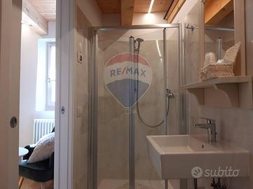 - Al piano terra una splendida cucina moderna, che mostra il sapiente recupero dell'antico focolare centrale, è visibile dalla vetrata della scala che sale al piano primo dall'ampia sala dedicata a colazioni e degustazioni.