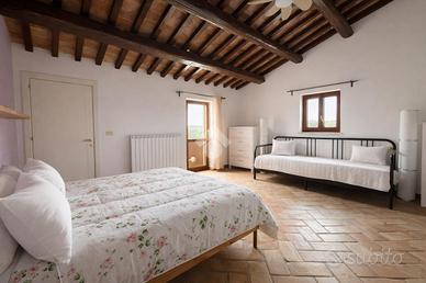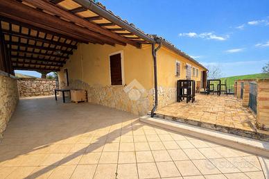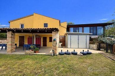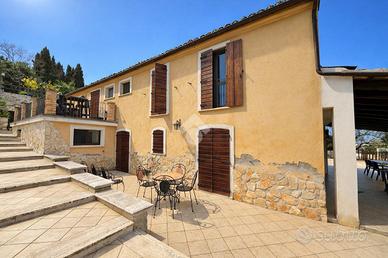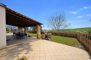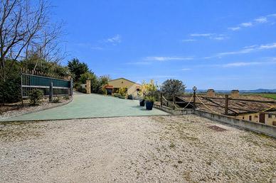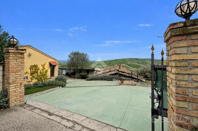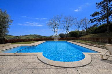 Nel cuore delle dolci colline teramane, nel territorio del comune di Bellante, in via dei Tini, proponiamo in vendita una suggestiva proprietà immersa nella tranquillità della campagna abruzzese e circondata da un paesaggio collinare di grande fascino. La posizione, riservata ma facilmente raggiungibile, offre una splendida vista panoramica sui campi e sulle colline circostanti, creando un contesto ideale per chi desidera vivere o investire in un luogo autentico dove natura e ospitalità si incontrano. La struttura nasce come antica Country House dell'Ottocento, sapientemente ristrutturata da artigiani locali, che hanno preservato il carattere originario della dimora mantenendo il suo tradizionale profumo rurale e valorizzando i materiali tipici dell'architettura locale. La proprietà si sviluppa all'interno di un ampio lotto di terreno e comprende il fabbricato principale disposto su due livelli, spazi esterni curati e una splendida piscina perfettamente inserita nel paesaggio circostante. Al piano terra si trovano gli ambienti dedicati all'accoglienza e alla gestione della struttura, tra cui una sala bar, un bagno di servizio, una lavanderia e altri locali funzionali, oltre ad un ampio portico coperto, ideale per momenti conviviali all'aperto. Il piano primo, destinato alla zona abitativa, ospita soggiorno, cucina e diverse camere da letto con bagno privato, ambienti luminosi e ben distribuiti che si affacciano sulle colline e sugli spazi verdi della proprietà. Accanto al fabbricato principale è presente una struttura separata destinata all'ospitalità, composta da cinque camere indipendenti, ciascuna dotata di bagno privato e ingresso autonomo, soluzione che garantisce comfort e privacy agli ospiti. Gli spazi esterni rappresentano uno dei punti di forza della proprietà: il terreno che circonda la casa crea una cornice verde naturale, arricchita anche da piante di ulivo, mentre la piscina offre uno spazio perfetto per il relax. Grazie alla sua configurazione e all