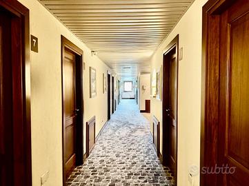 Al piano terreno vi è un ingresso su un ampia sala reception, una sala bar e una sala TV, una sala ristorante con cucina e con i relativi servizi igienici di cui due a norma per i disabili.