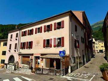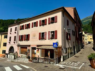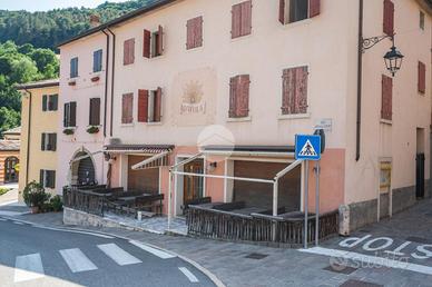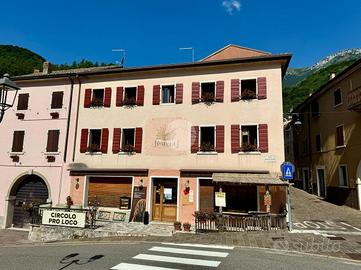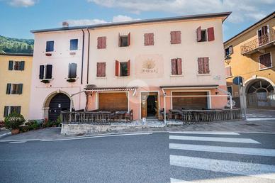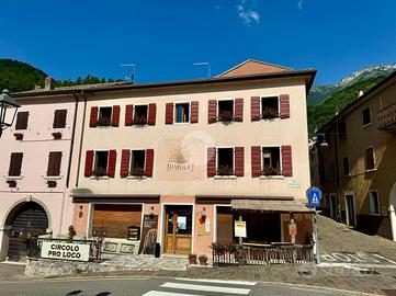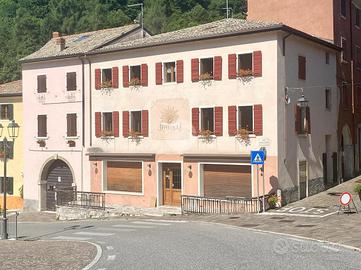 L'albergo è distribuito su tre livelli e vanta un bel plateatico di ca. 45mq affacciandosi sulla strada di principale passaggio con vista aperta sul monte Baldo .