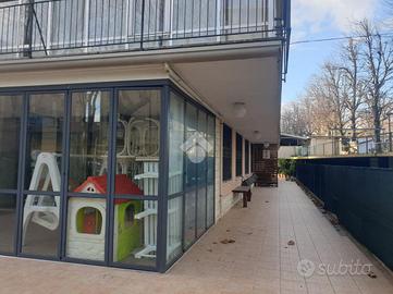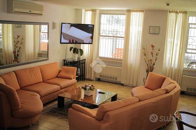 Ingresso e sala d'attesa al piano terra, sala da pranzo e cucina al piano primo. Tutto servito da ascensore.
