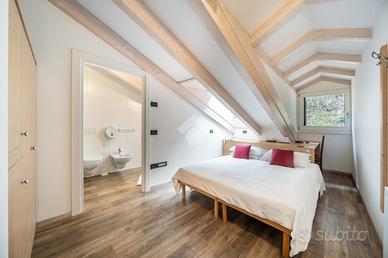 Completano la proprietà sei posti auto privati ed altrettanti consorziali, due ampie cantine, magazzino, locale caldaia e vano scala collegato su tutti i livelli con accesso esclusivo per i gestori.