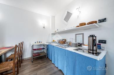 A piano terra, appartamento del gestore dotato di tre camere matrimoniali, due bagni finestrati, ampio soggiorno, cucina abitabile e impianto domotico per controllare riscaldamento e aria condizionata, garantendo un ambiente confortevole in ogni stagione.