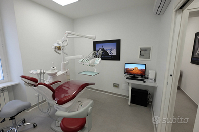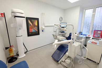 Affitto spazi in moderno Ambulatorio Dentistico di circa 75 MT di nuova concezione , attrezzatura seminuova, piano terra in palazzina di pregio a 100 metri da Metro Piazza Bologna e dalla Stazione Tiburtina, sala d'attesa , segreteria , bagno per i pazienti, bagno per il personale , area relax , 2 unità operative e una terza stanza predisposta per la terza poltrona , sala sterilizzazione e rifinitura modelli, ortopantomografo e rx endorali , autorizzato come Ambulatorio Odontoiatrico, accesso per disabili, completamente cablato con il gestionale nelle varie stanze.