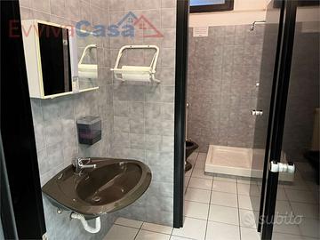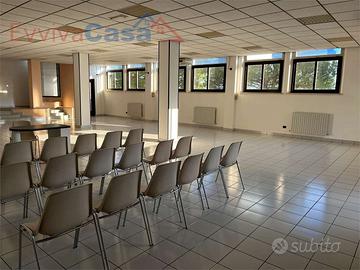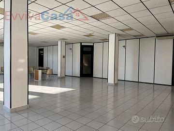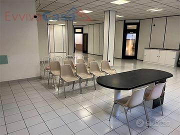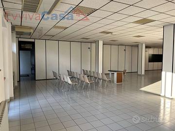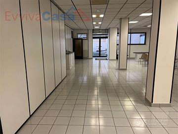 Internamente è stato suddiviso in vari ambienti con pareti "leggere" tipo ufficio, che potrai riposizionare a tuo piacimento. Dispone già di doppi servizi con piatto doccia, ciascuno con antibagno; poi ci sono due stanze tipo ufficio e un ripostiglio; il resto molto ampio è diviso in due ambienti principali che sono l'ingresso e il salone (o uditorio principale).