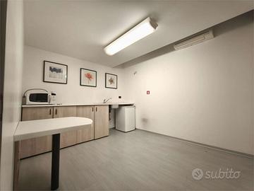Lufficio è composto da un ingresso accogliente, un ampio open space con un grande bancone per ricevere i clienti e diverse postazioni di lavoro, una sala riunioni, lufficio principale, un poggiolo per godersi un po di aria fresca, una stanza adibita a cucina, oltre a bagno e antibagno.