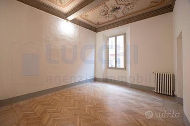 Bologna centro nella via che collega Via Indipendenza con Via Zamboni esattamente Via Marsala a 200 metri da Piazza San Martino proponiamo in affitto in palazzo storico del 1600 appartamento ad uso ufficio ristrutturato al piano primo senza ascensore di mq. 223 doppi affacci con ampie altezze composto da reception con ripostiglio, ampio salone, 5 grandi stanze, una stanza piccola suggerita ad uso copisteria, doppi servizi, cantina al piano interrato. Riscaldamento autonomo, ampie finestre con serramenti nuovi con vetro camera che rendono i locali luminosi ed imposte esterne in legno, predisposizione aria condizionata, pavimento in parquet legno in rovere naturale. Ha il pregio di avere due camini storici in marmo e i soffitti in parte affrescati. Buona la distribuzione degli spazi interni, silenzioso e luminoso con una buona esposizione nord-est.