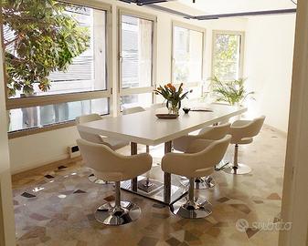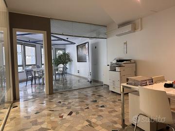 Varcata la porta troviamo un generoso ingresso, a seguire ci sono quattro stanze lavoro divise, un'ampia sala riunioni, corridoio, due bagni ed un ripostiglio (vano tecnico).