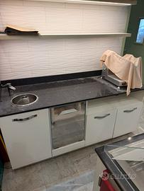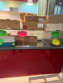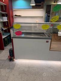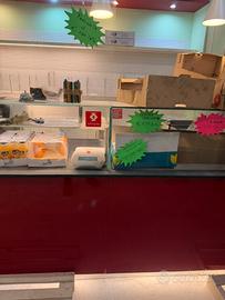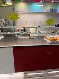 Vendo l' arredamento della panetteria con 2 frigoriferi, per affettati o formaggi, in ottimo stato. Bancone da lavoro, con staggere per pane più mensole. Arredamento solo da spolverare come si vede da foto