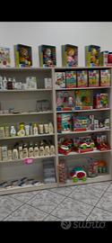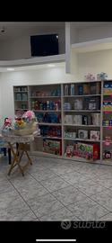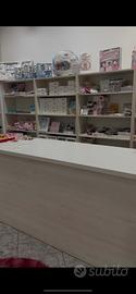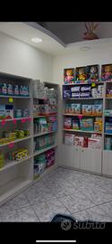 Arredamento, costruito su misura, in legno, composto da: - 20 mobili scaffalature - 2 banconi - 2 espositori centrali - 1 espositore parete Regalo sistema telecamere, antifurto, registratore di cassa, insegna luminosa, pistola spara prezzi No perditempo.