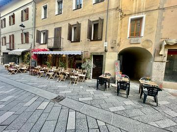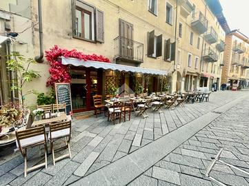 Aosta-Via E. Aubert. Nel cuore del centro storico e della via pedonale di Aosta, cessione di avviata attività di bar-ristorazione compresa di tutta l'attrezzatura e l'arredamento.