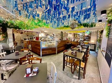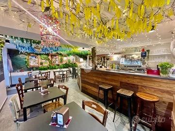 Il negozio grazie alla doppia vetrina sulla via pedonale offre un' ottima visibilità ed internamente ha un ingresso su una sala con vista bancone che ospita circa 40 coperti all'interno e circa 25 coperti nel dehors esterno, inoltre è dotato di cucina, servizio adatto ai disabili e magazzino.
