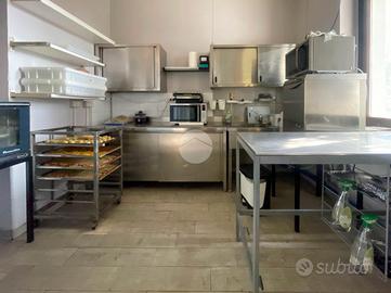 Il locale è diviso in quattro locali principali tra cui una zona cucina per preparazione piatti rigenerati, attualmente senza canna fumaria, ma con la possibilità di installarla.
