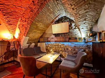 La storicità del locale e la particolarità del vicolo in cui è inserito, prestano il locale all'inserimento di bar e locali serali.