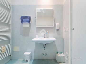 L'immobile si trova al primo piano di una recente e signorile palazzina servita da ascensore e priva di barriere architettoniche. Con una superficie di 80 mq, l'ambulatorio è così disposto: ingresso, zona front office, sala d'aspetto con bagno, sala chirurgica con saletta di preparazione e bagno, vano visite con ulteriore servizio igienico per gli utenti. Inoltre, sono presenti ripostigli e armadi a muro attrezzati. Completa la proprietà un posto auto di esclusiva pertinenza.