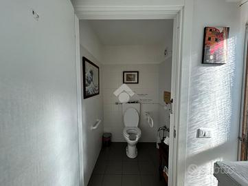 Si compone di due bagni e antibagno, 1 ad uso personale e 1 per la clientela (per disabili), una piccola cucina e un'ampio bancone che si affaccia sull'intero locale.