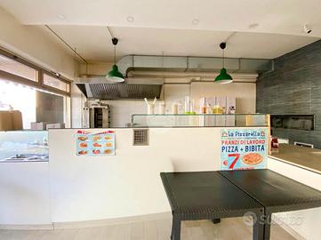 Nella cessione rientrano un forno a gas e a legna con capacità di infornata da 14 pizze caratterizzato da piastra girevole, macchina per kebab, un'impastatrice, una cella frigo e n. 2 frigoriferi per bevande, due banchi da lavoro per pizza e kabab, una friggitrice, tavoli da sala e sedie.
