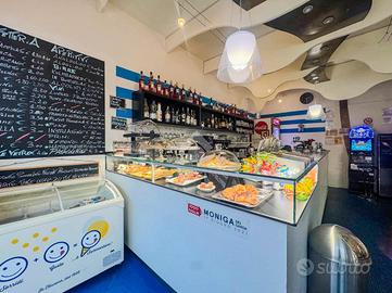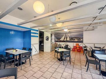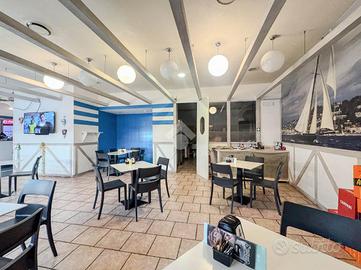 Attrezzatura: bancone bar, lavabicchieri, macchina per il ghiaccio, registratore di cassa, due frigoriferi a colonna, freezer a colonna, piastre a induzione, affettatrice, friggitrice; inventario completo disponibile in agenzia.