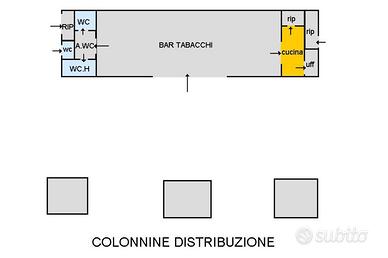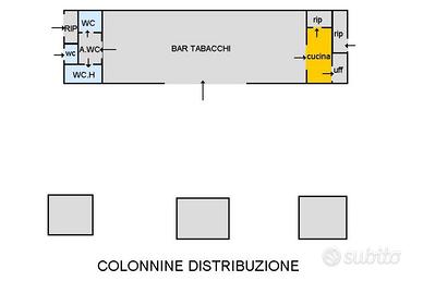 Al suo interno troviamo bar tabacchi, con cinque ambienti e tre servizi igienici tra cui uno con accesso per disabili.