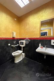 Attraverso l'ingresso dotato di vetrina si accede al locale principale, dove si trovano l'area caffetteria. Proseguendo si accede al servizio igienico riservato alla clientela.