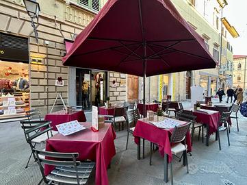 L'esercizio gode di un'autorizzazione che consente l'utilizzo del suolo pubblico antistante il locale, con la possibilità di sfruttare circa 50 mq per l'utilizzo di coperti esterni pagando un canone mensile di circa 180€.