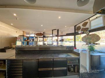 Nella cessione rientrano un forno a gas e a legna con capacità di infornata da 14 pizze caratterizzato da piastra girevole, macchina per kebab, un'impastatrice, una cella frigo e n. 2 frigoriferi per bevande, due banchi da lavoro per pizza e kabab, una friggitrice, tavoli da sala e sedie.