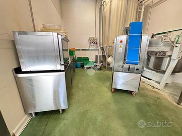 Linea produttiva completa di tutti i macchinari necessari per la preparazione degli impasti, dei ripieni, della loro cottura fino al packaging finale.