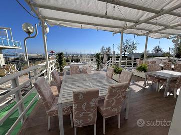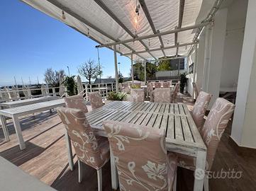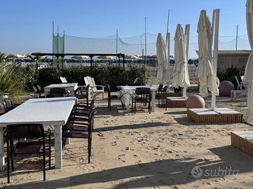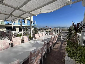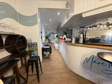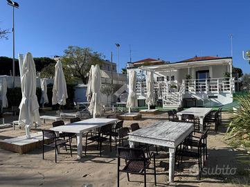 Il locale ha, complessivamente, una superficie di circa 500 mq.: oltre 250 mq di spiaggia privata allestita con tavoli ed ombrelloni ideale per servire colazioni ed aperitivi, terrazze per oltre 100 mq., locale Bar di oltre 120 mq. Coperti complessivi oltre 200.