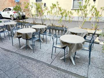 Esternamente, posto all'ingresso del locale, è disponibile e utilizzabile anche uno spazio per 8 posti a sedere con tavolini, coperto da tenda da sole, con la possibilità per la clientela di visionare partite di calcio dall'esterno grazie ad un telo tv.