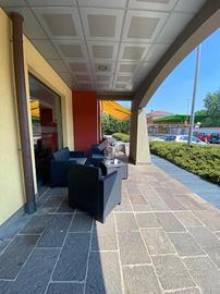 Il locale è ricavato al piano terreno di una recente palazina di gradevole impatto estetico, internamente il locale è accogliente e moderno; Gode inoltre di ampio magazzino al piano interrato, collegato al bar mediante scala interna. L'ampio porticato esterno ospita circa 20 posti a sedere.