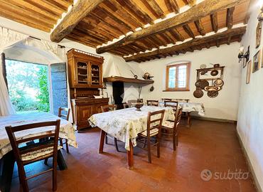 SERRAVALLE PISTOIESE Nella spendida cornice della campagna toscana, e più precisamente sulle colline di Serravalle Pistoiese, proponiamo in vendita questo caratteristico casale toscano dove accoglie un Agriturismo biologico con piscina. La piscina è parzialmente fuori terra. Intorno all'immobile ci sono circa 20 ettari di terreno tra boschi, filari di vigneti, oliveti. I vini prodotti sono Chianti DOCG, vini igt e passito. La proprietà presenta due fabbricati: La prima è una COLONICA PRINCIPALE che si sviluppa su 3 livelli di 538,00 mq, oltre la soffitta di 115,00 mq, per un totale di 653,00 mq, di cui attualmente una parte è adibita ad AGRITURISMO (270,00 mq tra piano terra, primo e secondo) ed un'altra utilizzata come ABITAZIONE PRINCIPALE (292,00 mq tra piano primo e secondo). Completano la proprietà le cantine, rimessa attrezzi e altri locali di vario uso (situati tra il piano terra ed il primo piano). Solo l'abitazione principale è civile abitazione, il resto è rurale con categoria D/10. La seconda, invece, è la TINAIA di 61,00 mq e con altezze di 5,00 m. che era utilizzata come locale adibito per la produzione di vino. Completa la proprietà un pollaio in muratura. Destinato all'accoglienza dei propri ospiti per vacanze all'insegna del "vivere toscano", attualmente L' AGRITURISMO è attivo e offre con i suoi 270,00 mq un potenziale molto vario con la possibilità di soggiornare in 6 camere da letto, 5 bagni e due cucine. La peculiarità di avere stanze connesse tra loro consente di ottenere maggiori soluzioni ed in tutto il fabbricato c'è la presenza di 3 cucine (di cui una professionale), più di 20 locali e ben 7 servizi igienici (di cui 5 con doccia e 2 con vasca). Per quanto riguarda il servizio idrico vi è la possibilità di utilizzare l'allaccio all'acquedotto oltre alla presenza di un pozzo. Il riscaldamento si basa su due caldaie a GPL, una per l'agriturismo ed una per l'abitazione principale, oltre alla presenza di molteplici inverter caldo fre