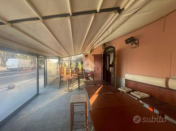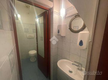 - primo vano con banco bar, tavoli interni e servizio igienico con antibagno