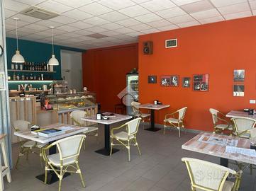 Lo spazio commerciale che ospita l'attività occupa una superficie di 86 mq, di cui 65 mq di sala, il restante suddiviso in due servizi igienici finestrati più magazzino e spogliatoio con l'aggiunta di un plateatico esterno di 45 mq.