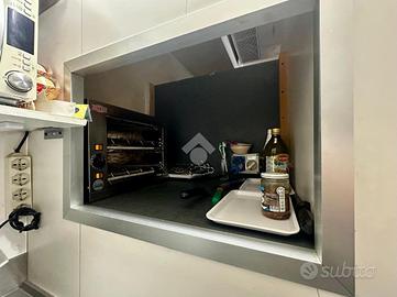 L'immobile è dotato di luminoso locale open space, un angolo cucina a parte, perfetto per attività che necessitano di un'area dedicata alla preparazione e servizio con antibagno.