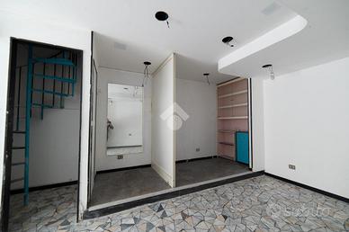 70 mq commerciali su due livelliIngresso a vetri open spaceSoppalco con bagnoScala a chiocciolaDa rivedere internamenteLocale luminoso e versatile