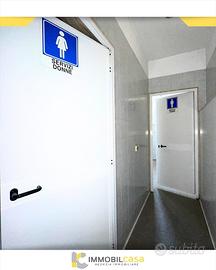 Il locale si divide in 380 mq a piano terra e 220 mq di deposito a piano seminterrato con 3 bagni in totale e dispone di pertinenza esterna di 330 mq ideale sia per carico e scarico merci sia come parcheggio.