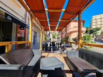 Vendesi attività avviata di bar situata a Sant'Anna, in locale di 65 mq completo di accessori e arredi moderni, con vetrina fronte strada e pedana in legno esterna di 6x2,20 m con copertura e arredi (tavoli e sedie), composto da:
