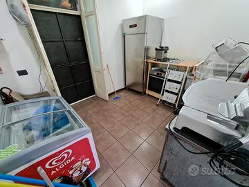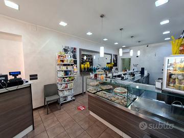 Dispone di agibilità, 380, illuminazione led, bagno frigo, retro banco, vetrina neutra, banco d'appoggio con specchiera, banco cassa, scalda cornetti, fornetto a microonde, piastra professionale a due bracci, affettatrice, forno, banco di lavoro in acciaio inox, cella frigo in acciai inox, lavello professionale con gocciolatoio inox, tenda da sole e pedana esterna.