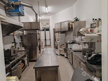 L'attività comprende bar attrezzato, cucina professionale, angolo pizzeria con forno dedicato e reparto rosticceria, permettendo di coprire diverse fasce orarie: colazioni, pranzi, aperitivi, cene e food d'asporto.