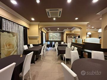 Il compendio immobiliare è così ben distintamente suddiviso: nel periodo invernale sono disponibili tre sale per un totale di 150 coperti c.a. a sedere, nel periodo primaverile ed estivo grazie ad un estensione esterna con copertura e pluviali in gazebo residente alle intemperie è possibile aumentare la capacità di accoglienza clienti di 100 coperti ulteriori per un totale di 250 posti a sedere. L'attività ben avviata può contare su un servizio sia di pranzo di lavoro che di cene aziendali e business fino a matrimoni ed eventi per le famiglie. L'angolo bar ottimamente fornito è suddiviso in diversi punti di approvvigionamento food & beverage con angolo caffè, spine e frigoriferi, proseguendo nel lato pizzeria si trova il forno pizza rotante a legna e gas, il quale può cuocere in modo uniforme fino a otto pizze alla volta, con annesso relativa sfogliatrice per velocizzare la stesura dell'impasto. Grazie ad una veranda è possibile ottenere un'apertura sul plateatico esterno e godere dell'ottima aria proveniente dal lato nord. Cucina attrezzata con reparto cottura con cappa di aspirazione, sei fuochi, friggitrice, forno, impastatrice per pasta fresca e due postazioni per lavaggio piatti e pentolame. Al piano seminterrato deposito, magazzino e spogliatoio. Appartamento al piano terra composto da soggiorno con angolo cottura, due bagni e camera da letto matrimoniale, con possibilità di ricavare un ulteriore camera da letto. due terrazzi di proprietà esclusiva. area pertinenziale di proprietà nel retro cucina per stivare bidoni per la raccolta differenziata. Siamo disponibili per le visite da subito, offriamo il servizio di valutazione immobiliare gratuita, passa dal nostro studio per una consulenza. Servizio di consulenza finanziaria per leasing immobiliare.