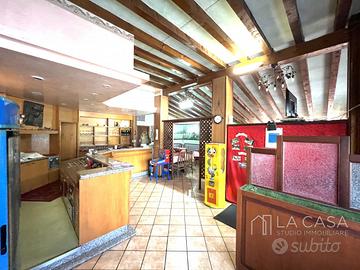 Ora composta da salone con forno per pizzeria oltre a cucina completa. Bar con seconda sala e salone ricevimenti con ingresso indipendente. Tutte le sale con propri bagni a norma.
