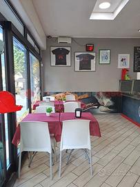 Il locale che ospita la suddetta attività, nato dall'unione di due locali comunicanti, offre una superficie totale di 100 mq, suddivisi in un'ampia e spaziosa cucina; in un bagno di servizio e nell'area adibita all'attività stessa e al ristoro dei clienti.