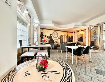 L'attività si svolge in un locale commerciale di circa 100 mq, composto da due sale interne climatizzate, dotate di due ampie vetrine, e un cortile di circa 30 mq. Le sale possono accogliere comodamente fino a 40 coperti.