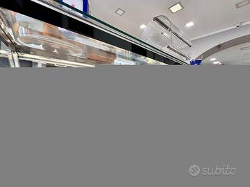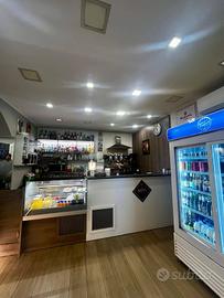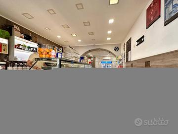 Interni curati e funzionali, con banco bar e vetrina per lesposizione dei prodotti di rosticceria.