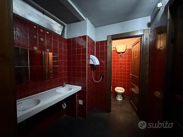 Il locale si sviluppa su una superficie di circa 100 mq ed è composto da due ambienti distinti. La prima sala, che funge da ingresso principale, accoglie la clientela con un ampio bancone che corre lungo tutta la parete, impreziosito da un grande espositore di bottiglie in vetro specchiato, sgabelli, elementi decorativi e quadri che conferiscono carattere e atmosfera all'ambiente. A completamento della zona banco è presente una piccola cucina, attualmente priva di fornelli. La seconda sala è adibita all'area tavoli ed è servita da due bagni separati per uomini e donne.