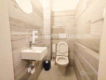 La metratura interna di circa 25 mq si sviluppa in un open space con ampia vetrina che gode di un illuminazione naturale a tutte le ore del giorno e dispone di un comodo spazio ad uso magazzino/deposito nella parte superiore, regolarmente soppalcata.